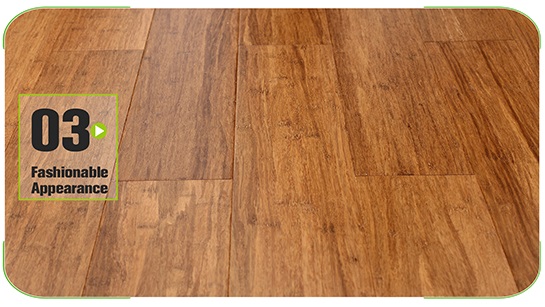 click strand woven bamboo flooring is newly developed in recent years, a new type of green environmental material with consistent high quality. Strand woven bamboo is a wood manufacturing process based on principles of reorganization, processed with bamboo as raw material, a new bamboo floor board. Strand woven is composed from bamboo beam which is cracked into long and cross-linked fiber, then drying, gluing, and pressing to get the log of strand woven.